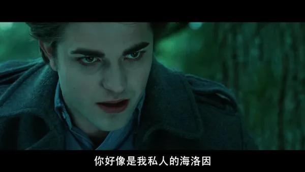 贝拉之于爱德华,就如羊之于狼,他一边喜欢她想要靠近她,一边又害怕靠得太近会伤害她,爱一个人就是会如此的小心翼翼呀。有一幕我很喜欢,爱德华出现在贝拉的家中,想要亲吻贝拉,小心翼翼的试探,缓缓靠近,轻轻吻上,吻到深情处,却又靠意志力把自己从贝拉身上推开,他怕自己失控伤害了贝拉,贝拉对他就像毒药一样,有着致命的吸引力。性张力真的满满。
